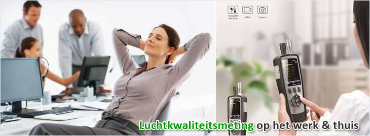 - » multifunctionele luchtkwaliteitsmeting (fijnstof, formaldehyde, TVOC, RH, CO2, CO)